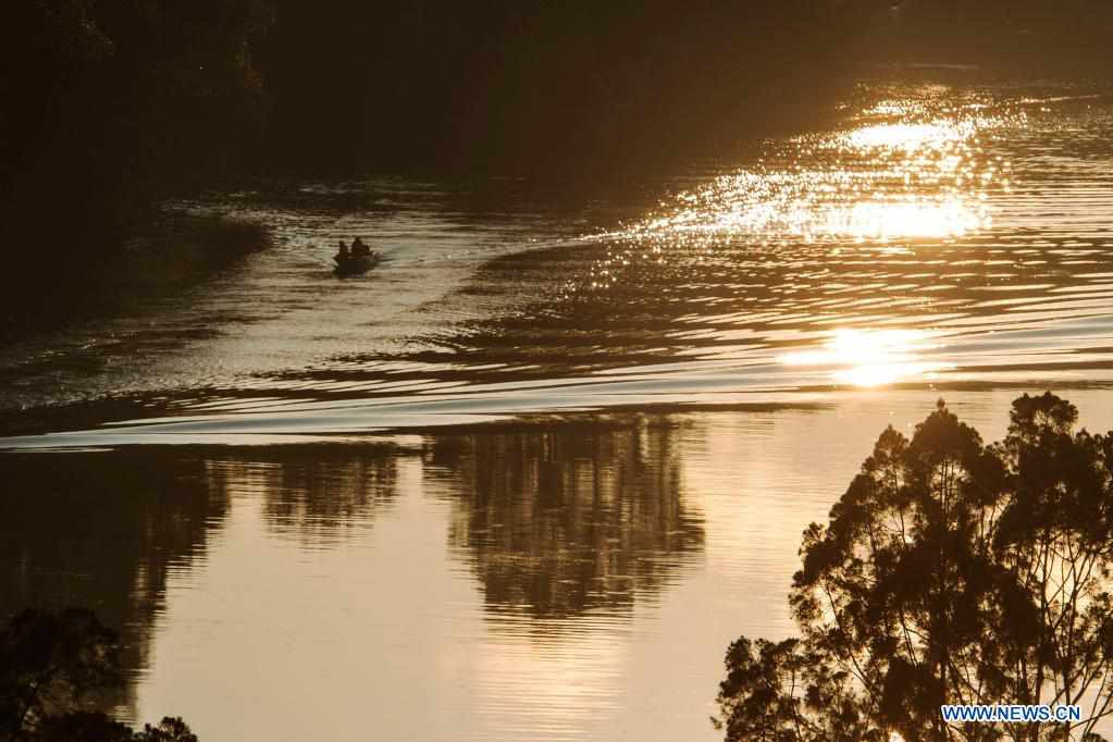 Workers ride on a boat in Singapore's Central Catchment Nature Reserve on April 21, 2021. (Photo by Then Chih Wey/Xinhua)