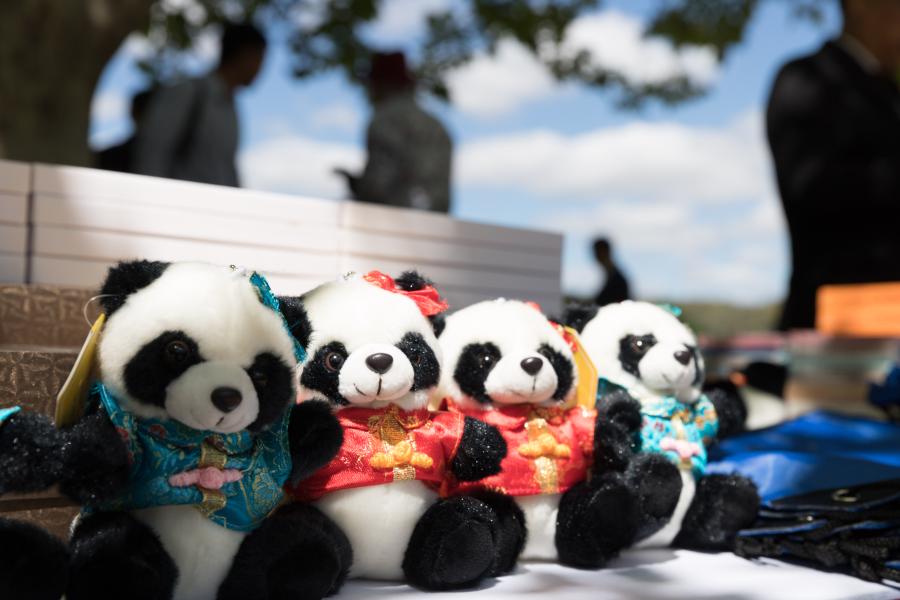 Photo taken on Nov. 18, 2020 shows panda toys during a "Tree of Friendship" planting ceremony in Canberra, Australia, Nov. 18, 2020. (Photo by Liu Changchang/Xinhua)