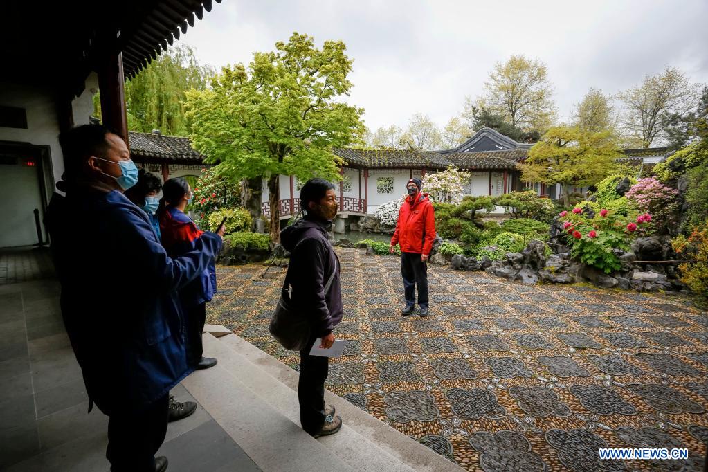 People visit Dr. Sun Yat-Sen Classical Chinese Garden in Vancouver, British Columbia, Canada, on April 24, 2021. Dr. Sun Yat-Sen Classical Chinese Garden reopened Saturday with limited capacity and health safety protocols. (Photo by Liang Sen/Xinhua)