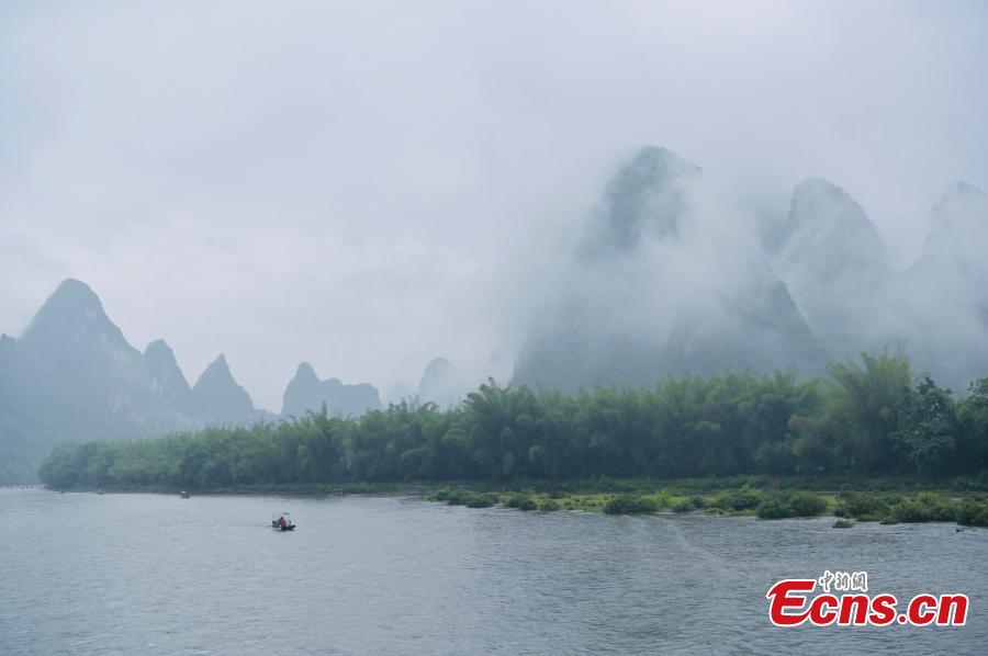 Misty rain covers the Lijiang River in Guilin, Guangxi Zhuang Autonomous Region, April 28, 2021. (Photo: China News Service/Yu Jing)