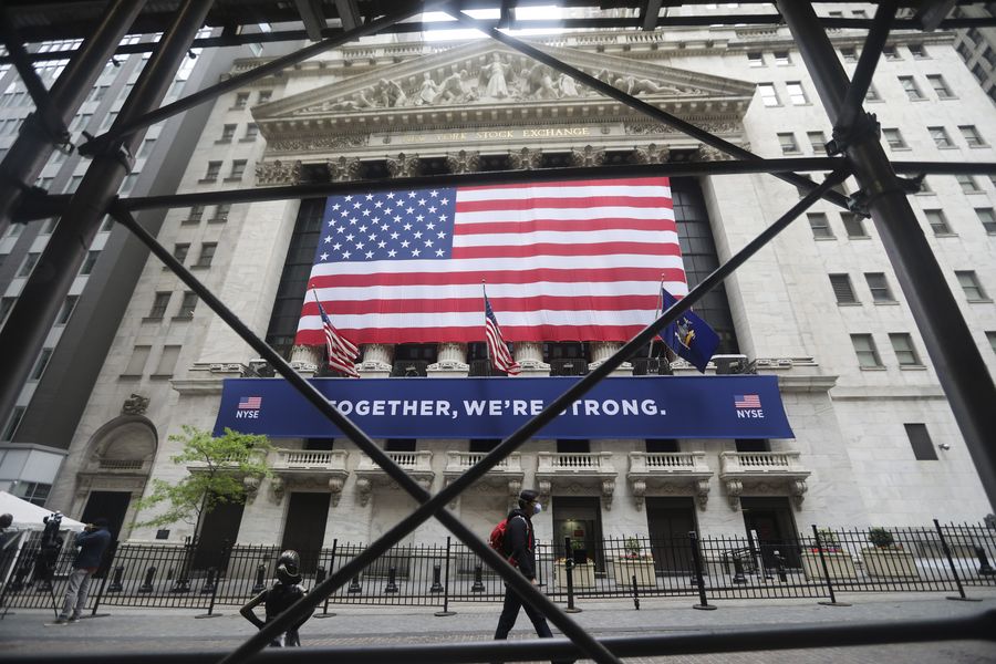 Photo taken on May 26, 2020, shows the exterior of the New York Stock Exchange in New York, the United States. The New York Stock Exchange (NYSE) partially reopened its iconic trading floor on Tuesday after a two-month closure due to the COVID-19 pandemic. (Xinhua/Wang Ying)
