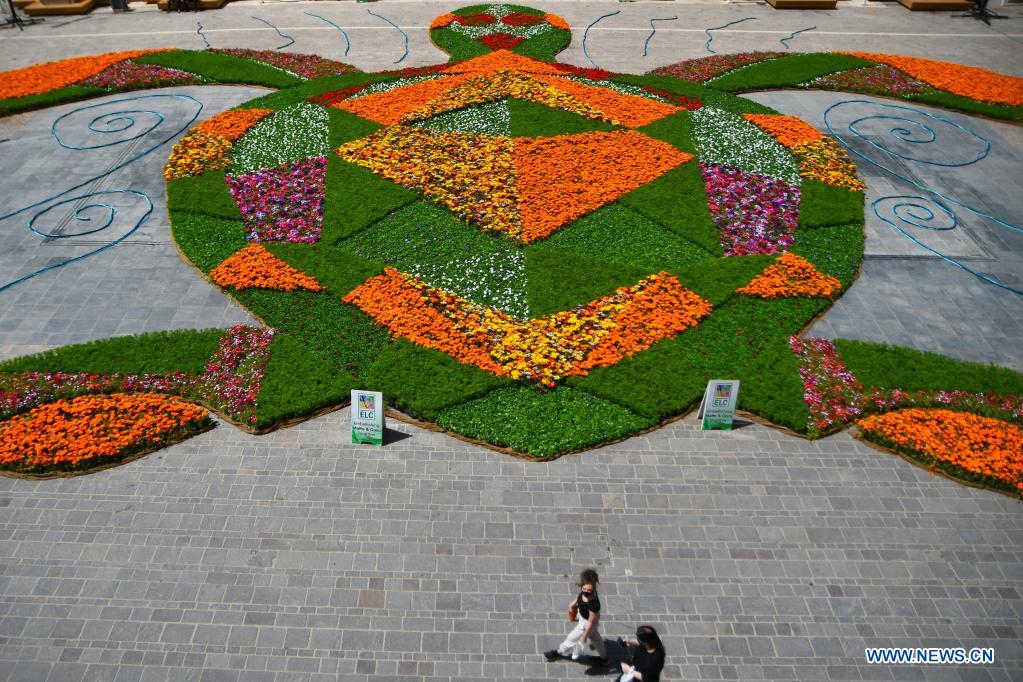 St. George's Square is decorated with flowers and plants during Valletta Green Festival in Valletta, capital of Malta, on May 7, 2021. The Valletta Green Festival was launched on Friday with this year's theme of "zero pollution". (Photo by Jonathan Borg/Xinhua)