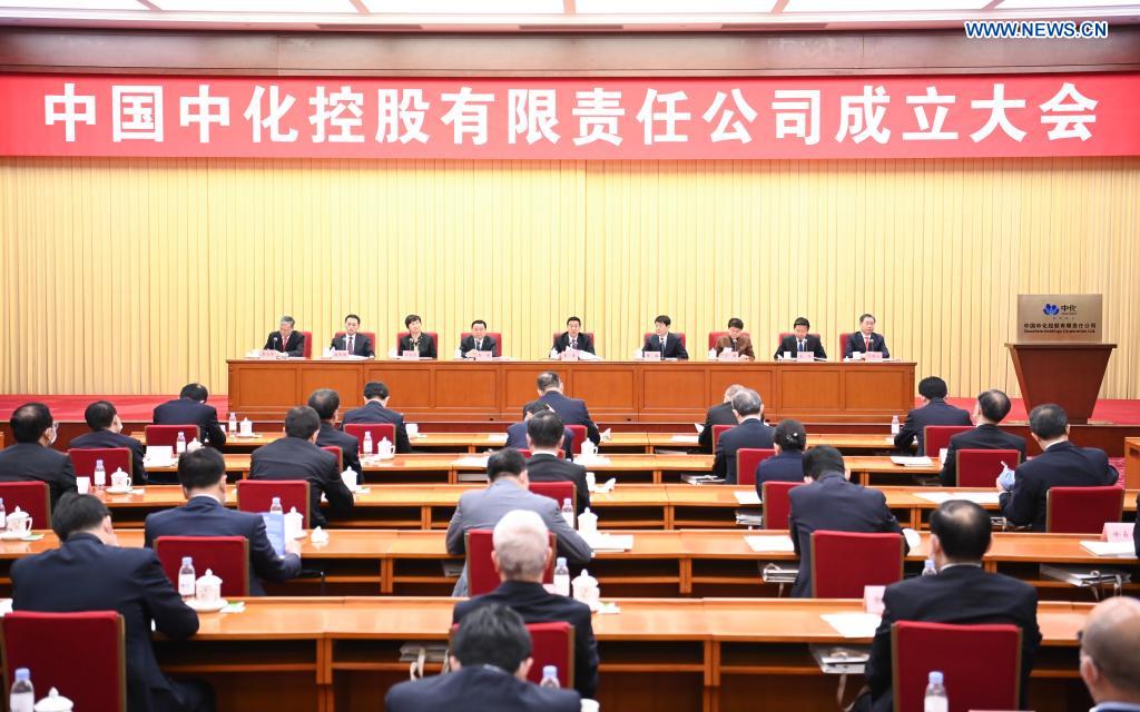 Chinese State Councilor Wang Yong speaks at the establishment ceremony of a new holding company as a result of the merger of Sinochem Group and ChemChina Group, two state-owned chemical giants, in Beijing, capital of China, May 8, 2021. (Xinhua/Li Xiang)