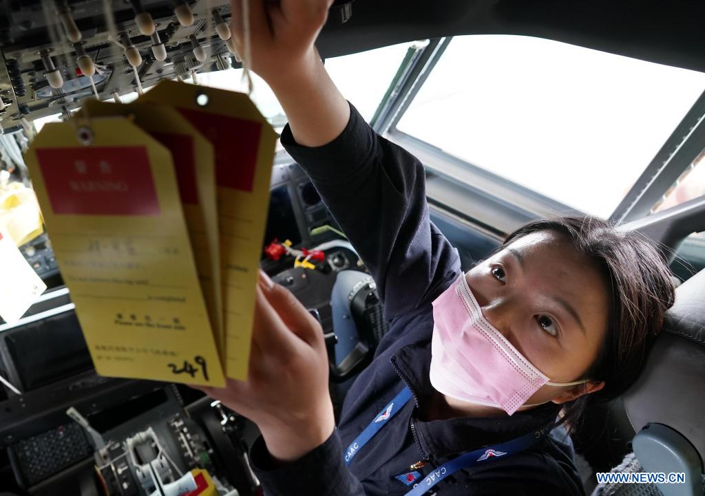 Liu Qiqi works at a maintenance base of the Henan branch of China Southern Airlines in Zhengzhou, central China's Henan Province, April 30, 2021. Liu Qiqi is a 24-year-old mechanic in Henan branch of China Southern Airlines. Graduating from Civil Aviation University of China in 2019, Liu Qiqi is eye-catching in the team, for she is the only female mechanic in the nearly 200-strong maintenance workforce. Working in a traditionally male-dominated industry, Liu was questioned a lot when she entered the profession. The job requires hard graft, and a girl may not be able to handle such high work intensity. "My colleagues care about me, hence they used to assign me with light work," Liu said. However, as a tough girl, Liu never halts. Instead, from changing wheels to replacing landing gear, she has been working hard to earn recognition. Gradually, her colleagues have been used to working with Liu Qiqi on regular work, and started to call her "Qi Ge" out of respect, meaning "Qi bro". In spite of the less-than-2-year work experience, Liu Qiqi impressed some senior colleagues with her learning competence and insight. From a green hand to the backbone of the department, Liu contributes her maturation to her eagerness to learn and pursuit of her dream. "I am an airplane lover since my childhood, and there are near 100 magazines related to airplanes and science on the shelf in my home," Liu said, "The books enlightened me, and it is a pleasure for me to work on something I adore. As a worker of the young generation, I fear no failure and hard work, and I have the courage to pursue my dream." (Xinhua/Li An)
