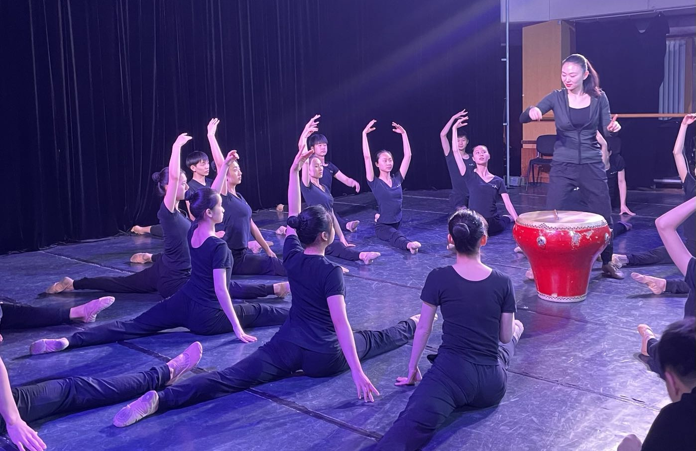 Photo taken on April 15, 2021, shows Hei Hong, a teacher from the China Disabled People’s Performing Arts Troupe instructing her students to feel the beats through vibrations. (People’s Daily Online/ Wu Chaolan)