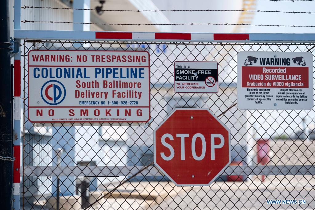 Photo taken on May 11, 2021 shows a Colonial Pipeline facility in Baltimore, Maryland, the United States. U.S. Secretary of Energy Jennifer Granholm on Tuesday urged Americans not to hoard gasoline as the operator of a main U.S. fuel pipeline is expected to fully resume operations in a few days after it was forced to shut down due to a cybersecurity attack. (Xinhua/Liu Jie)