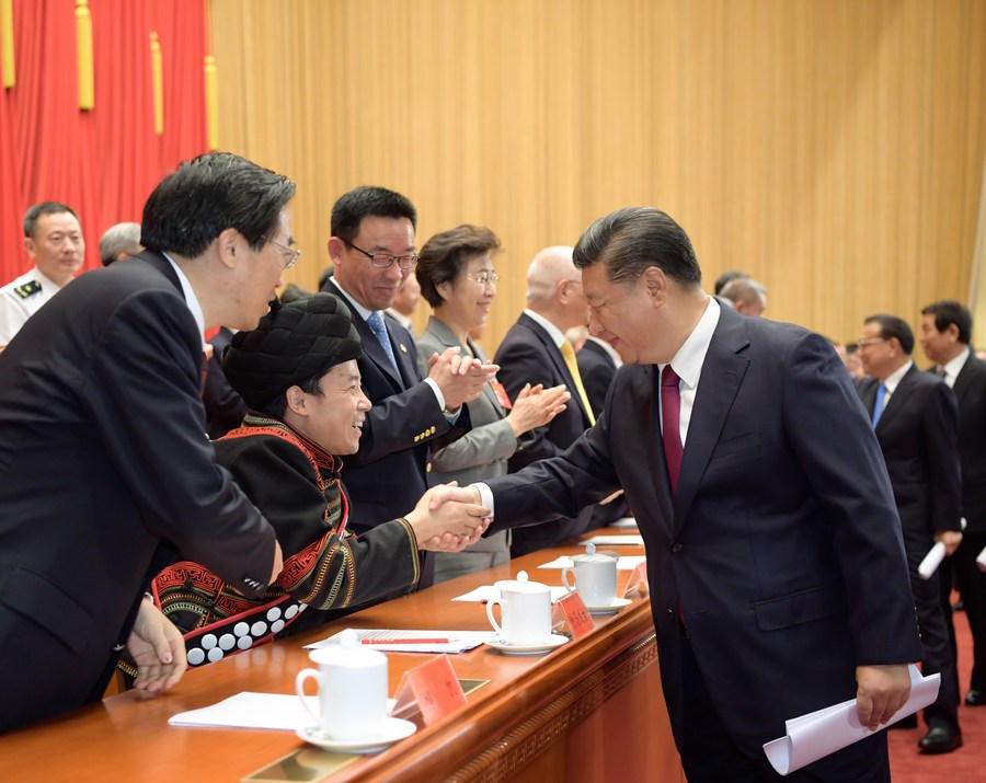 Chinese President Xi Jinping, also general secretary of the Communist Party of China (CPC) Central Committee and chairman of the Central Military Commission, meets with representatives attending a ceremony commending role models with disabilities and people who have made outstanding contributions in helping the disabled, at the Great Hall of the People in Beijing, capital of China, May 16, 2019. (Xinhua/Li Xueren)