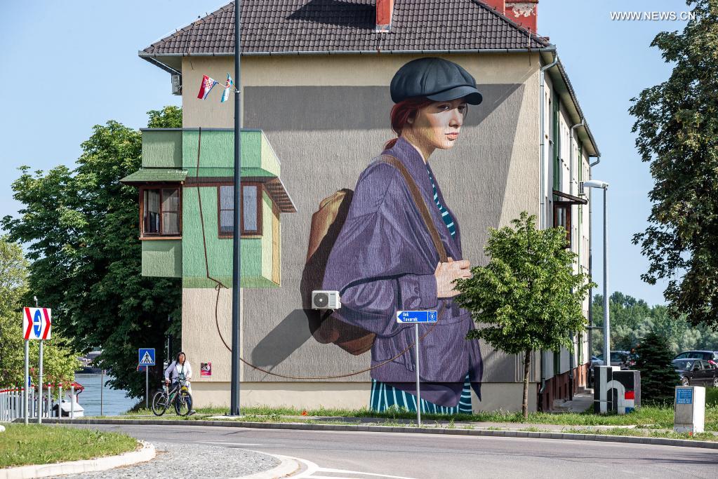 A mural is seen on the wall of a building in Vukovar, Croatia, May 27, 2021. Street art festival VukovART, which features murals created by world-famous artists on the walls and sidewalks, is held in Vukovar for the fifth year in a row. (Davor Javorovic/Pixsell via Xinhua)
