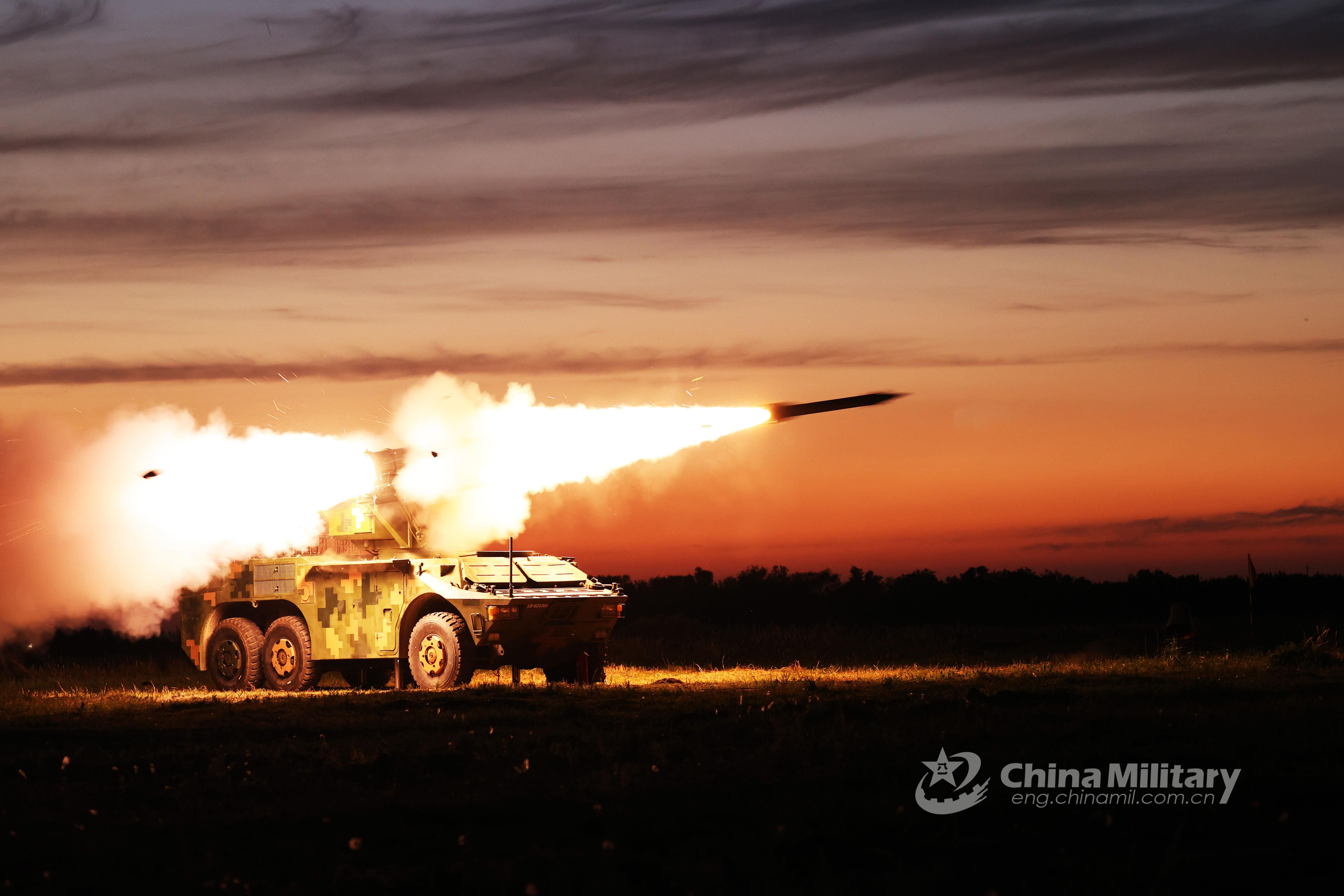 An armored vehicle assigned to the missile element of a brigade under the PLA 80th Group Army fires the missile during a live-firing assessment on May 17, 2021. (eng.chinamil.com.cn/Photo by Liu Xiaoshuai)