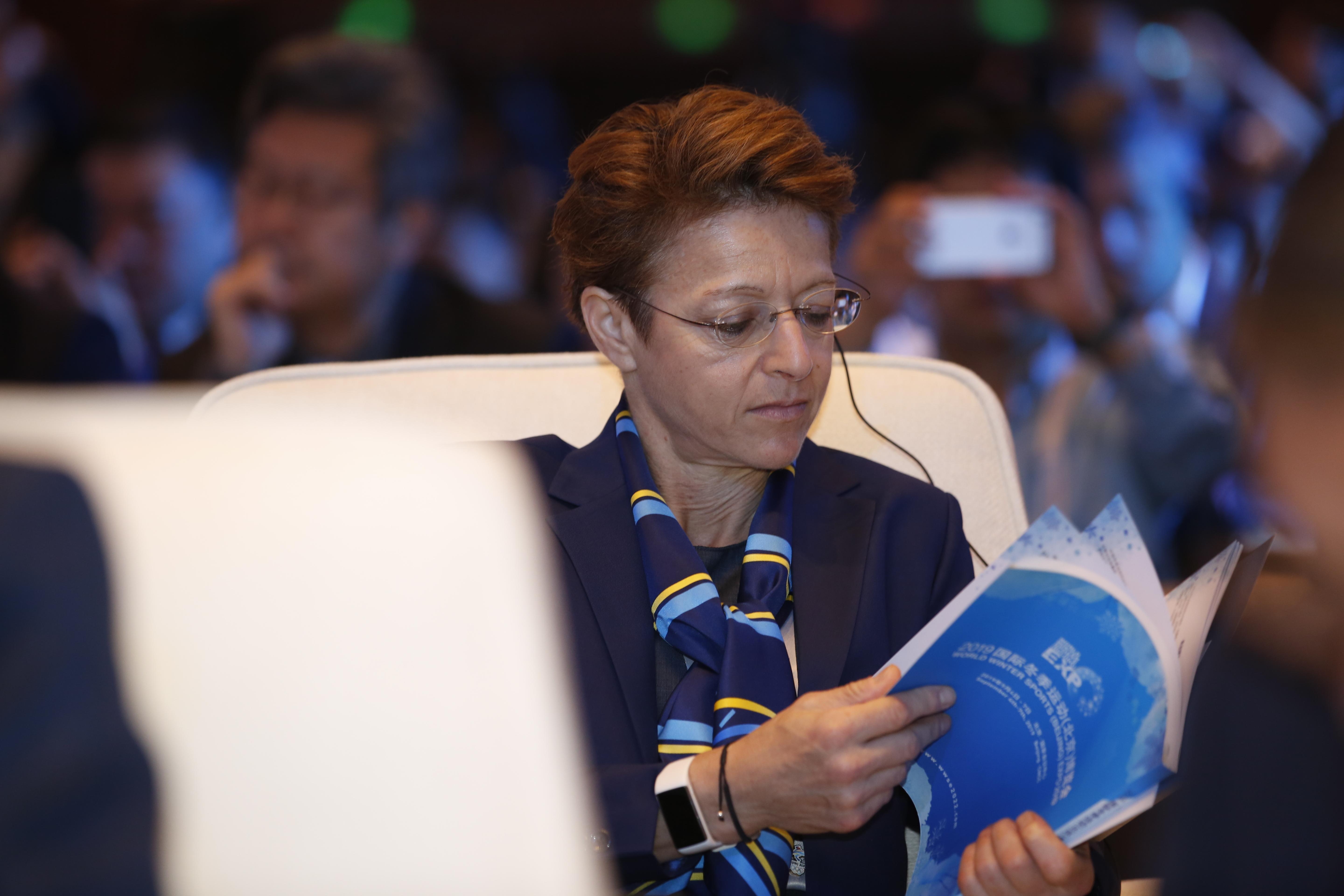 FIS president candidate Sarah Lewis attended the World Winter Sports Expo 2018 in Beijing. (Xinhua/Wang Zijiang)
