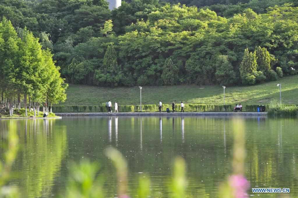People visit a city park along Chanhe River in Xi'an, northwest China's Shaanxi Province, May 28, 2021. (Xinhua/Shao Rui)