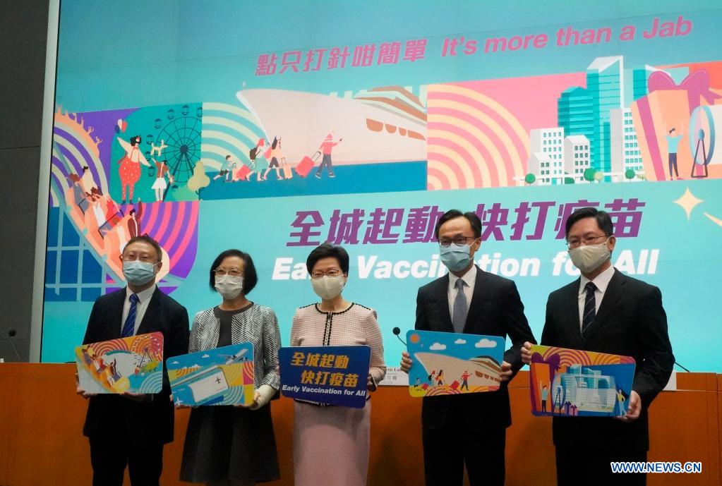 Lam also announced the launch of the "Early Vaccination for All" campaign to help build an immune barrier in Hong Kong as soon as possible by significantly raising the vaccination rate during the three-month-long critical period from now until the end of August.