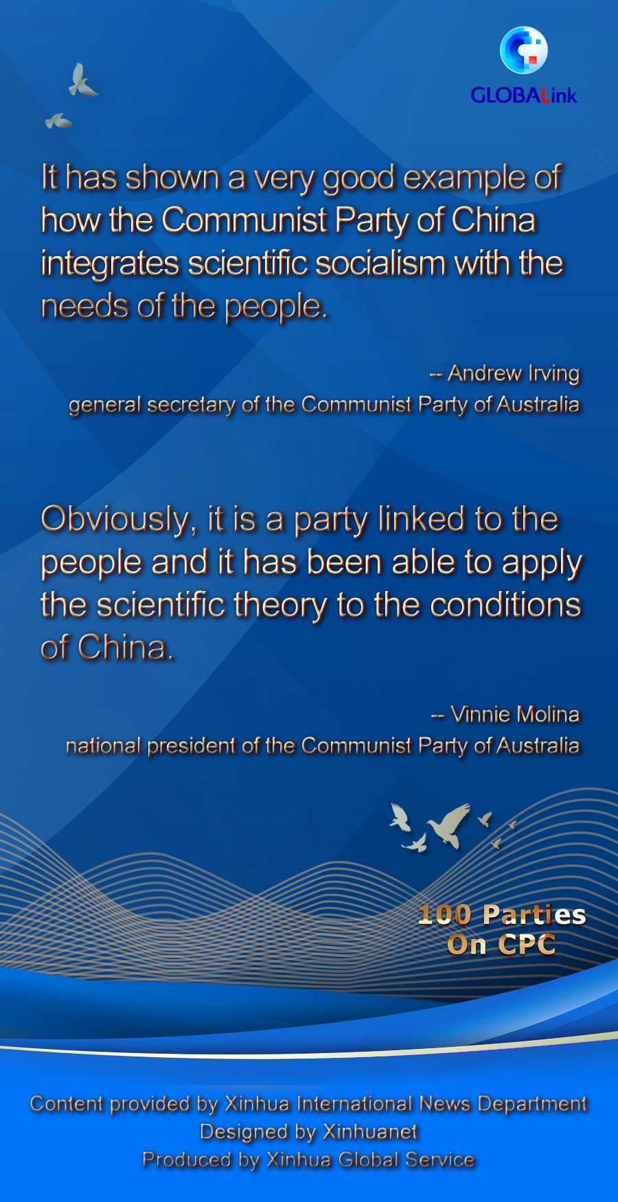 This year marks the 100th anniversary of the founding of the CPC. In separate interviews with Xinhua, Irving and Molina talked about their observation of the Chinese ruling party.