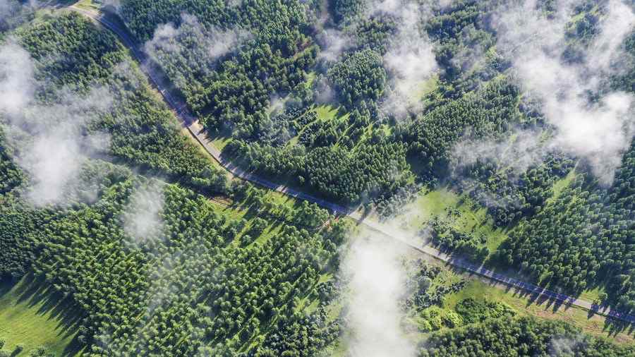 Aerial photo taken on Aug. 9, 2020 shows the scenery in Saihanba National Forest Park in Chengde, north China's Hebei Province. (Photo by Liu Mancang/Xinhua)