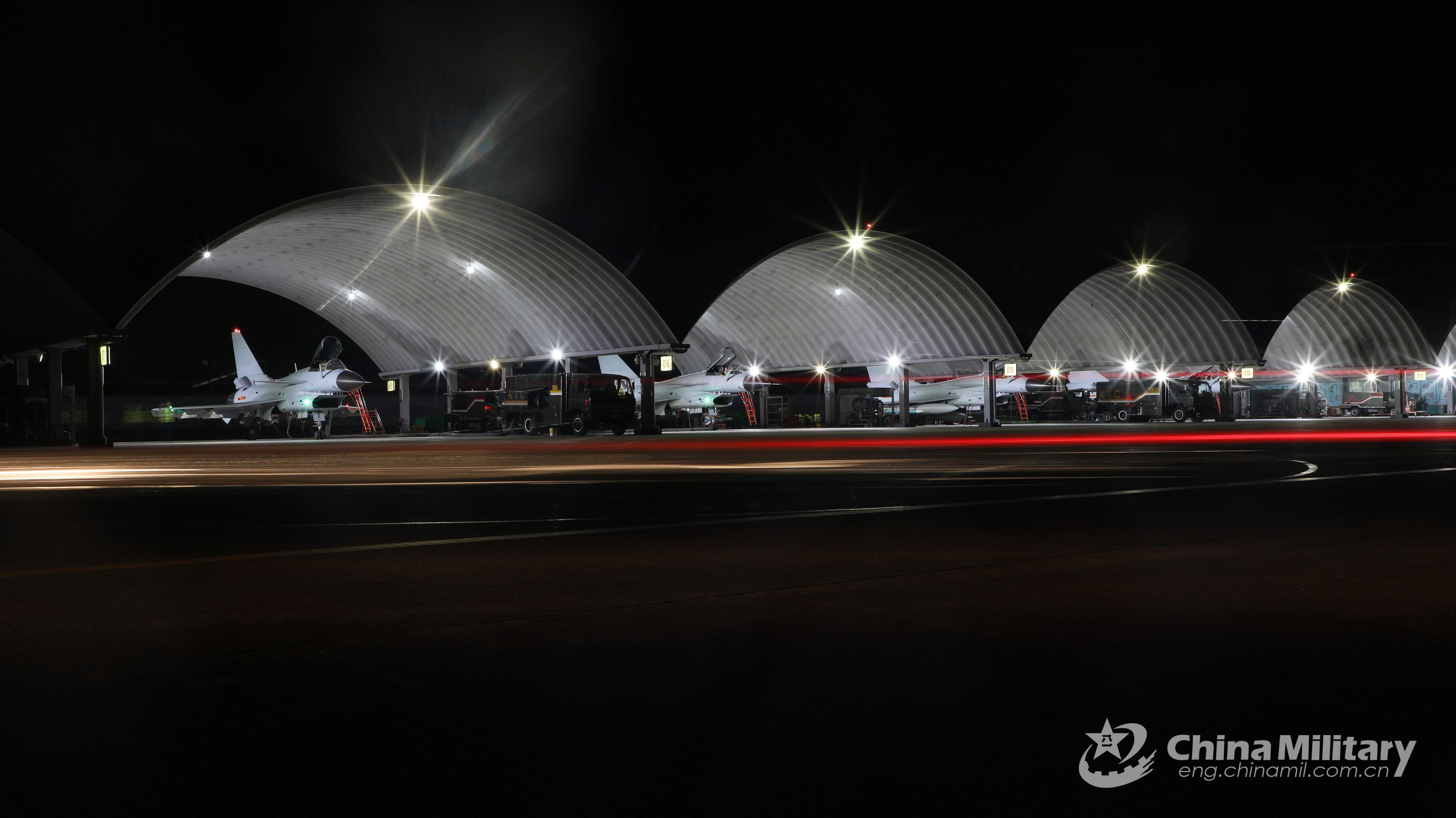 Fighter jets attached to a brigade with the air force under the PLA Southern Theater Command sit in the hangars waiting for the start of a night training exercise on May 26, 2021. (eng.chinamil.com.cn/Photo by Wu Gaoming)