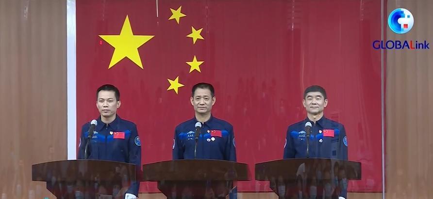 JIUQUAN, June 16 (Xinhua) -- Nie Haisheng, Liu Boming and Tang Hongbo, the three Chinese astronauts for the upcoming Shenzhou-12 mission, met the press on Wednesday.
