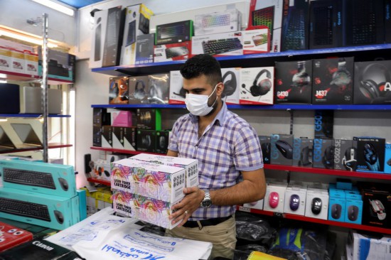 In his retail store located in the Mansour neighborhood in Iraq's capital Baghdad, 28-year-old Ali Abbas, surrounded by stacks of electronic products, was busy in sorting them out for re-distribution.