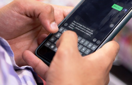 The shop owner sends a message to a customer for informing him that his goods have arrived in Baghdad, Iraq, on May 26, 2021. (Xinhua / Khalil Dawood)