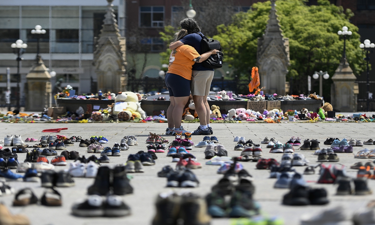People pay tribute to the murdered aboriginal children in Ottawa, Canada, on June 4.Photo: Xinhua