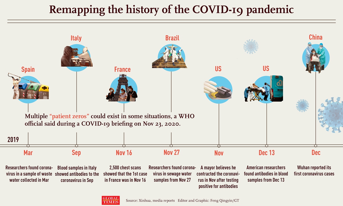 The WHO and some of its scientists confirmed to the Global Times previously that the agency is working with researchers in Italy and a reference laboratory to retest the samples of a study that suggested the coronavirus may have been circulating in Italy since fall 2019.