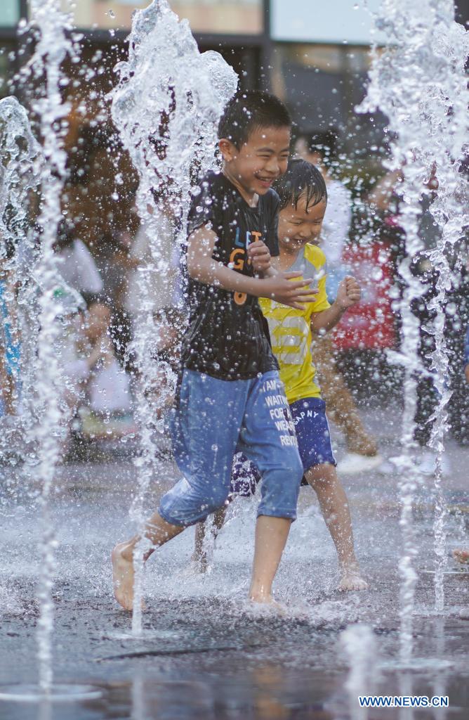Children cool off at a fountain in Beijing, capital of China, June 20, 2021. (Xinhua/Chen Yehua)