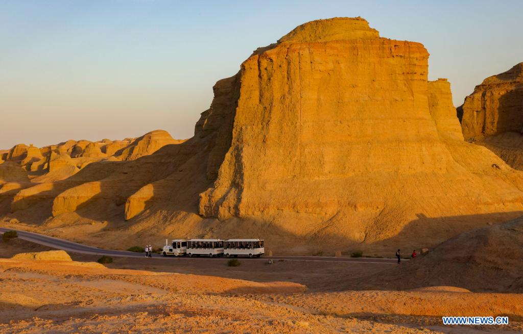 Photo taken on June 21, 2021 shows a view of a Yardang scenic area in Urho District of Karamay, northwest China's Xinjiang Uygur Autonomous Region. (Xinhua/Hu Huhu)
