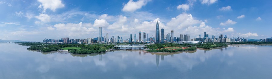 Aerial panoramic photo taken on Sept. 12, 2020 shows the Houhai area in Nanshan District of Shenzhen, south China's Guangdong Province. (Xinhua/Mao Siqian)
