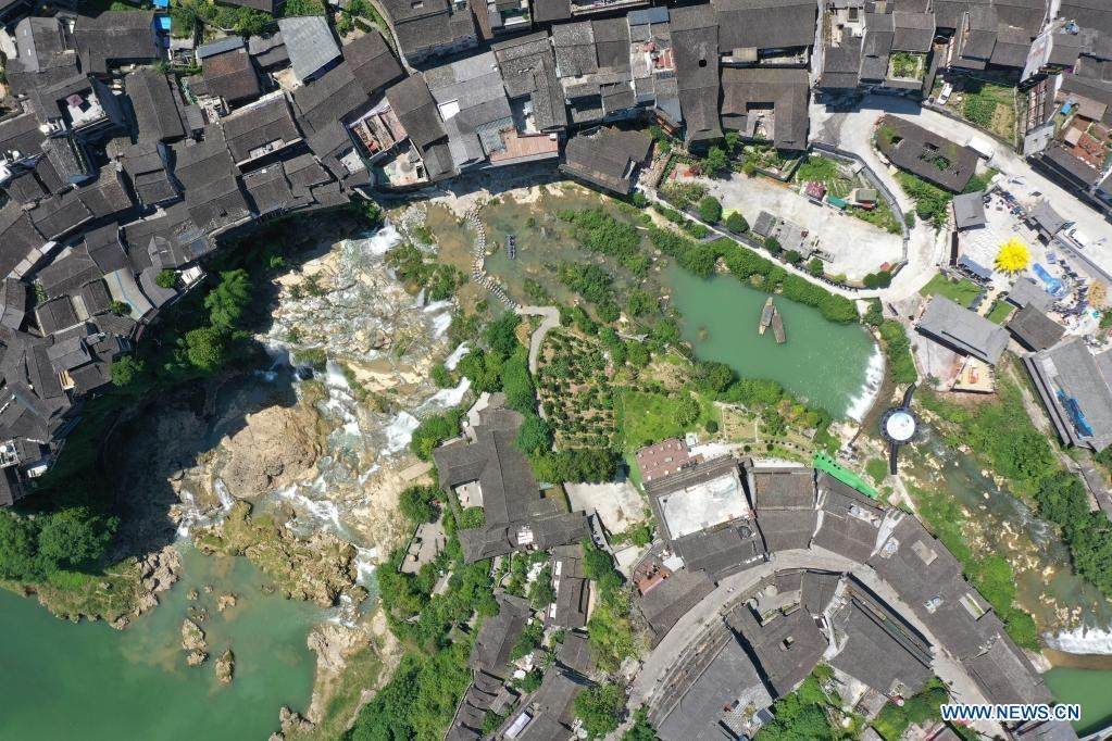 Aerial photo taken on June 22, 2021 shows the scenery of Furong Township in Xiangxi Tujia and Miao Autonomous Prefecture, central China's Hunan Province. (Photo by Liu Zhenjun/Xinhua)