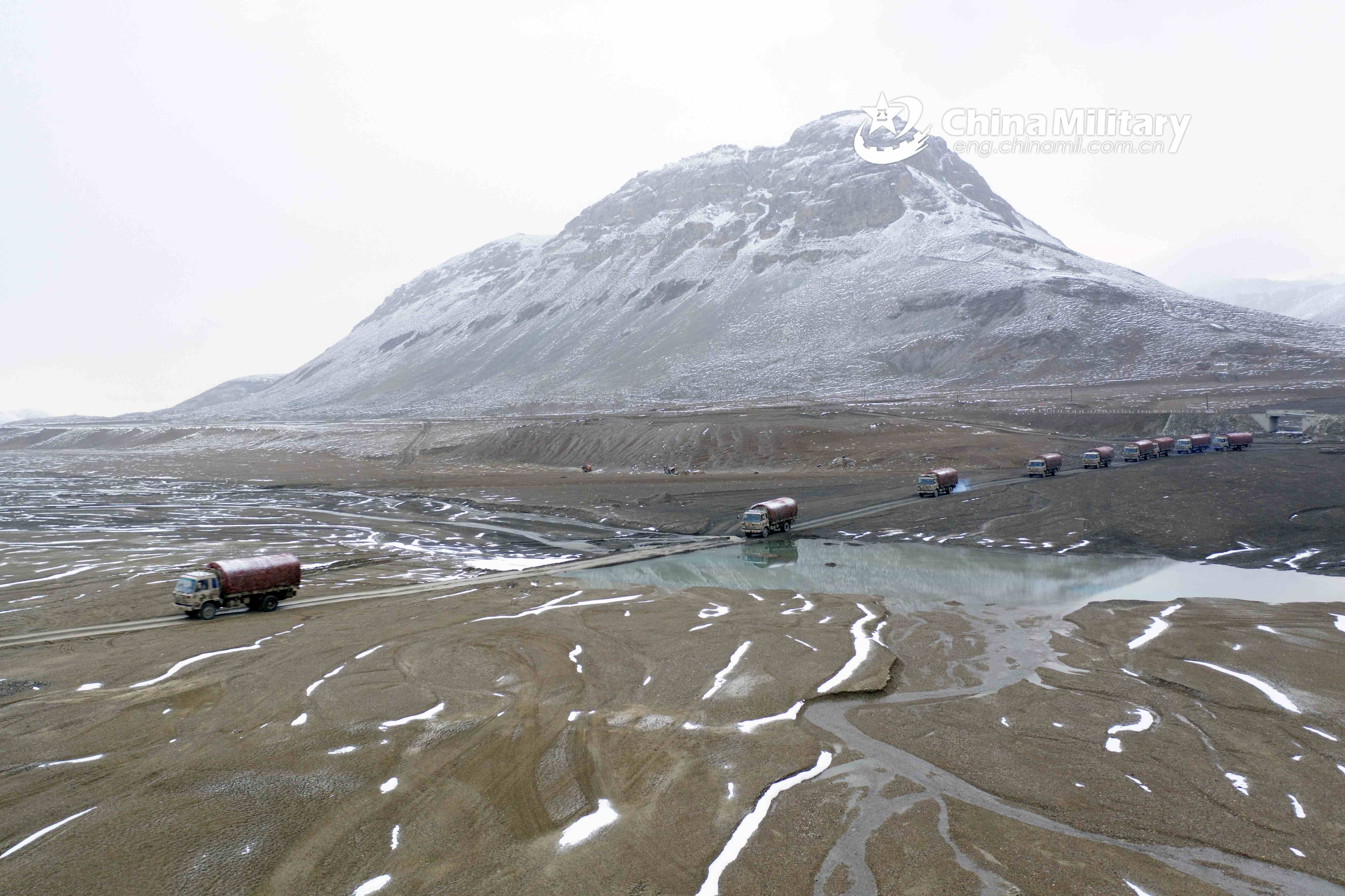 A convoy of military vehicles carrying supplies is en route to a scheduled place during a driving skill training exercise organized by a regiment under the PLA Xinjiang Military Command on June 16, 2021. (eng.chinamil.com.cn/Photo by Li Renxi)