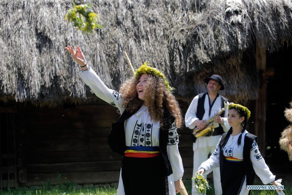 Performers are seen during a Midsummer Day celebration at Village Museum in Bucharest, Romania, on June 24, 2021. (Photo by Cristian Cristel/Xinhua)