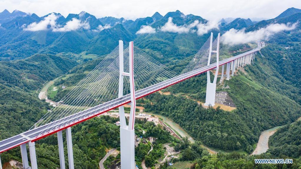 Aerial photo taken on June 28, 2021 shows the Yunwu Bridge of the Duyun-Anshun expressway in southwest China's Guizhou Province. The Duyun-Anshun expressway was put into operation on Monday. It is the first section of the 276-kilometer-long national expressway G7611 linking Duyun with Shangri-La. (Xinhua/Tao Liang)