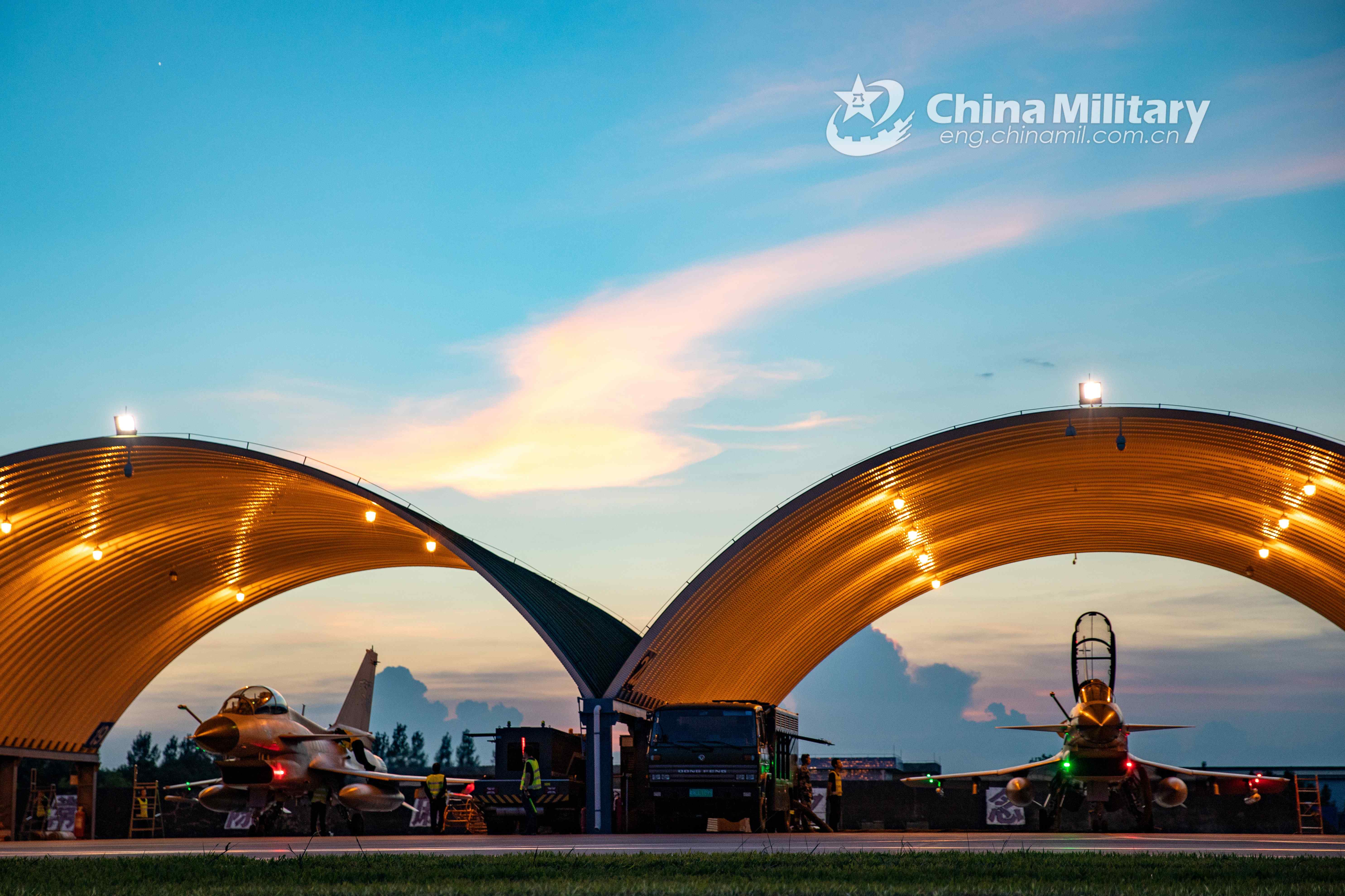 Fighter jets attached to an aviation brigade of the air force under the PLA Southern Theater Command receive pre-flight inspections in aircraft hangars prior to a round-the-clock flight training exercise on June 16, 2021. (eng.chinamil.com.cn/Photo by Wang Guoyun)
