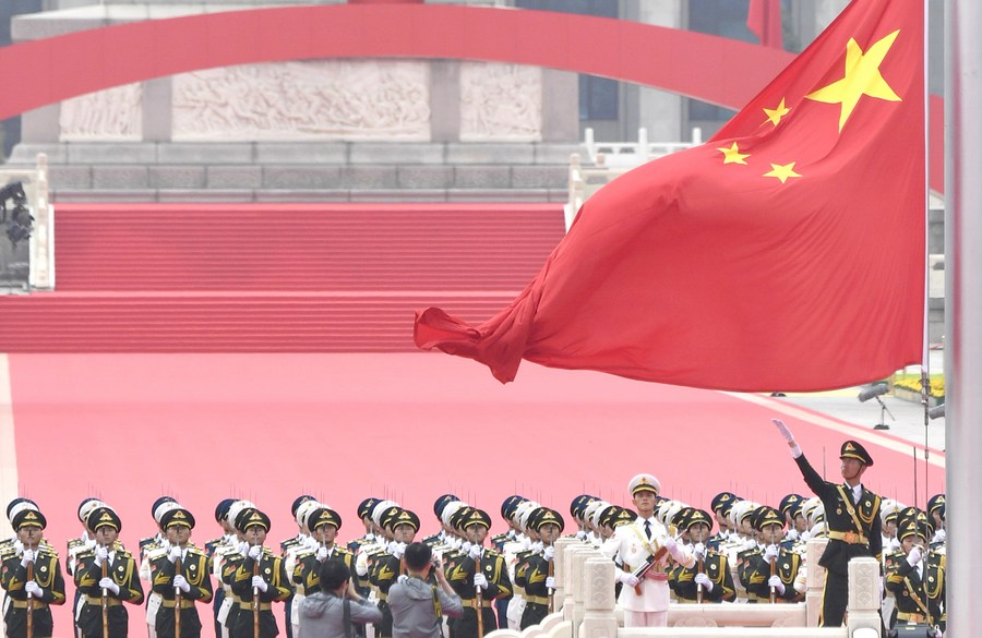 A national flag-raising ceremony is held at Tian'anmen Square during a ceremony marking the centenary of the CPC in Beijing, July 1, 2021. (Xinhua/Gao Jie)