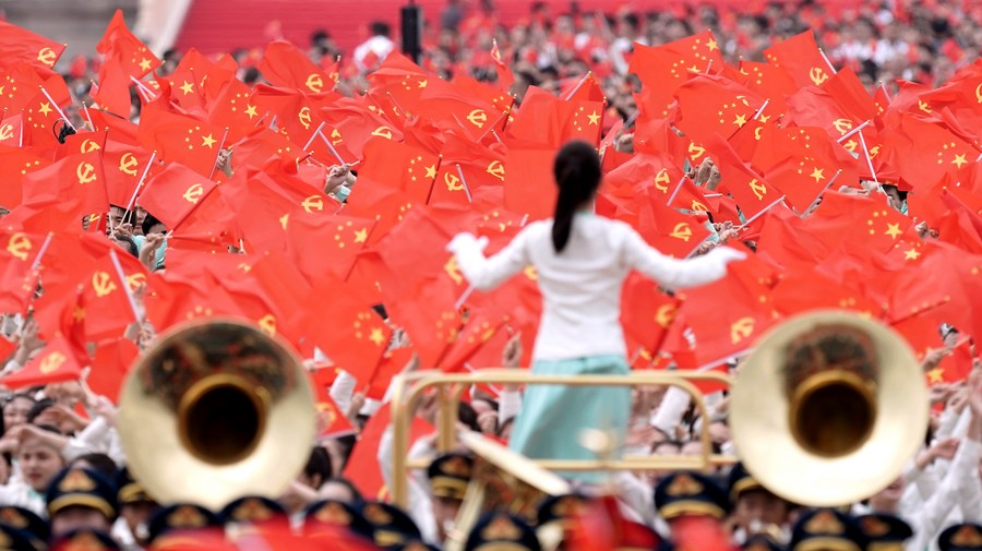 Xi delivered a nationally-televised speech from Tian'anmen Rostrum before a 70,000-strong crowd. The historic event also witnessed a chorus of Party songs, a flypast of fighter jets and helicopters, a 100-gun salute, and a flag-raising ceremony.
