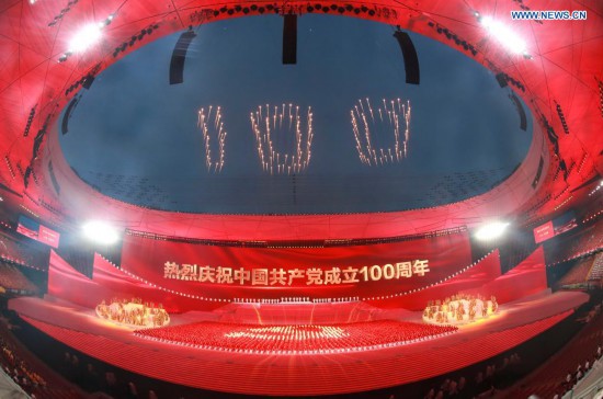 An art performance titled "The Great Journey" is held in celebration of the 100th anniversary of the founding of the Communist Party of China (CPC) at the National Stadium in Beijing, capital of China, on the evening of June 28, 2021. (Xinhua/Pang Xinglei)