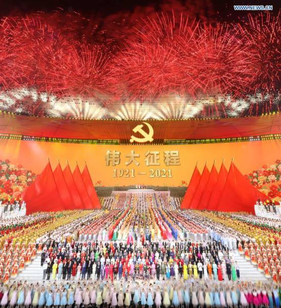 An art performance titled "The Great Journey" is held in celebration of the 100th anniversary of the founding of the Communist Party of China (CPC) at the National Stadium in Beijing, capital of China, on the evening of June 28, 2021. (Xinhua/Pang Xinglei)