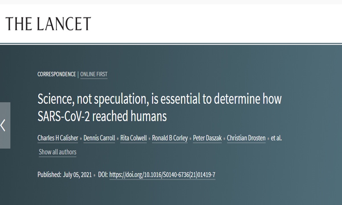 The right-wing press has been contacting authors, one by one and repeatedly, throughout the last six months, pushing them to state whether they would change their stance. For example, the Daily Mail has published pictures of all the scientists who had signed the letter and said that some of the scientists changed their stance by believing in the 'lab-leak' theory, a source close to the open letter in The Lancet told the Global Times on Wednesday.