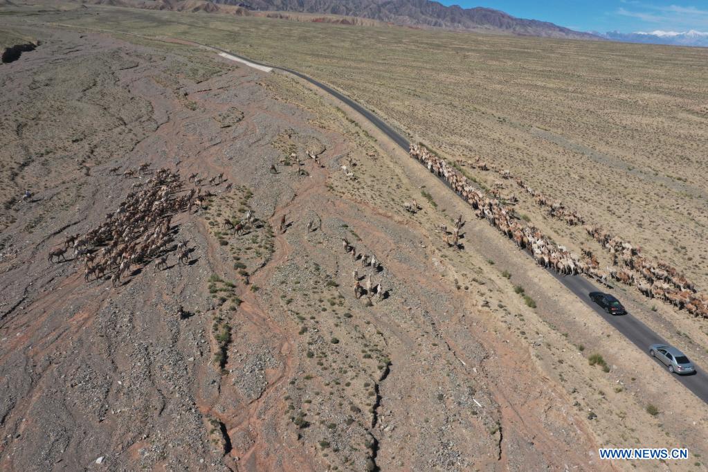 Herdsmen drive camels to summer pastures in Jiuquan, NW China (4)