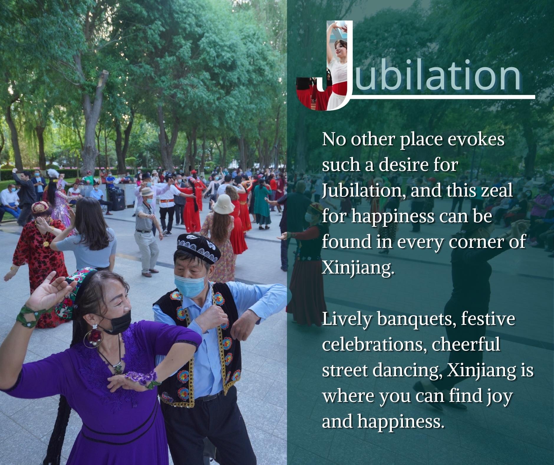 No other place evokes such a desire for Jubilation, and this zeal for happiness can be found in every corner of Xinjiang. Lively banquets, festive celebrations, cheerful street dancing, Xinjiang is the place where all can find joy and happiness.