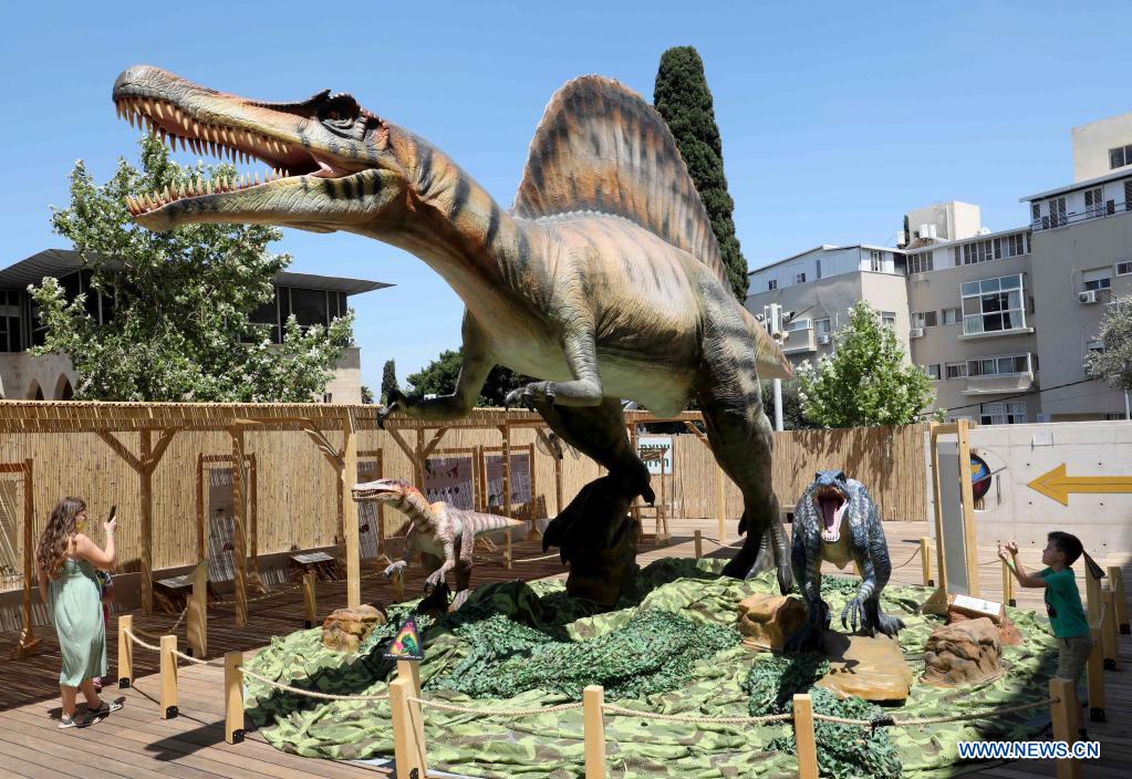 People visit an exhibition of dinosaurs at Madatech, Israel's National Museum of Science, Technology and Space, in the northern Israeli city of Haifa, July 13, 2021. (Photo by Gil Cohen Magen/Xinhua)