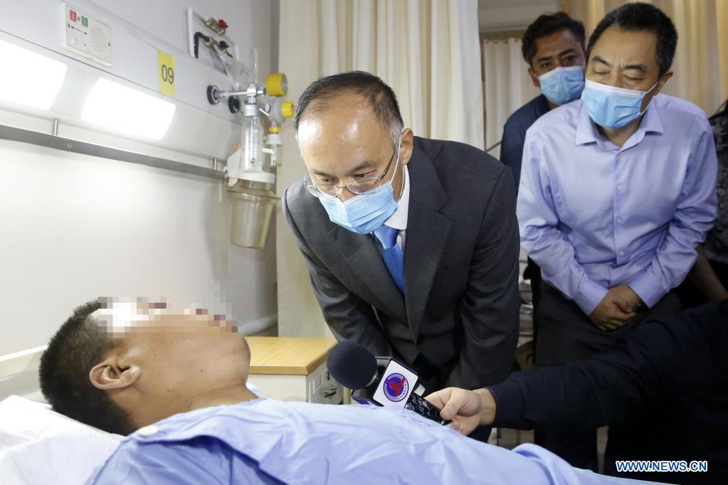 At the hospital, Nong inquired in detail of the treatment and condition of the injured Chinese nationals, conveyed the care and concern of the Chinese government and the people to the injured and wished them quick recovery.