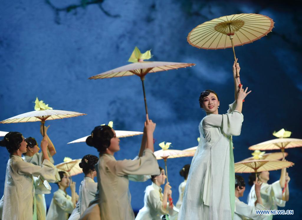 Artists perform at the opening ceremony of the 44th session of the World Heritage Committee of UNESCO in Fuzhou, southeast China's Fujian Province, July 16, 2021. The 44th session of the World Heritage Committee of UNESCO kicked off Friday in Fuzhou, capital of east China's Fujian Province, to review world heritage items online for the first time. (Xinhua/Song Weiwei)