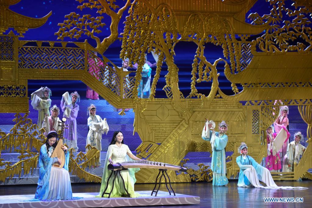 Artists perform at the opening ceremony of the 44th session of the World Heritage Committee of UNESCO in Fuzhou, southeast China's Fujian Province, July 16, 2021. The 44th session of the World Heritage Committee of UNESCO kicked off Friday in Fuzhou, capital of east China's Fujian Province, to review world heritage items online for the first time. (Xinhua/Song Weiwei)