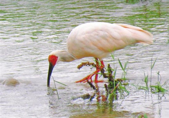 A crested ibis foraging for food. (Shaanxi Daily/Shen Dongxi)