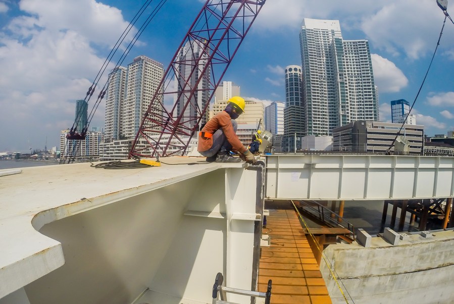 Workers work at the construction site of the China-funded Binondo-Intramuros Bridge in Manila, the Philippines, Nov. 18, 2020. (Xinhua/Rouelle Umali)