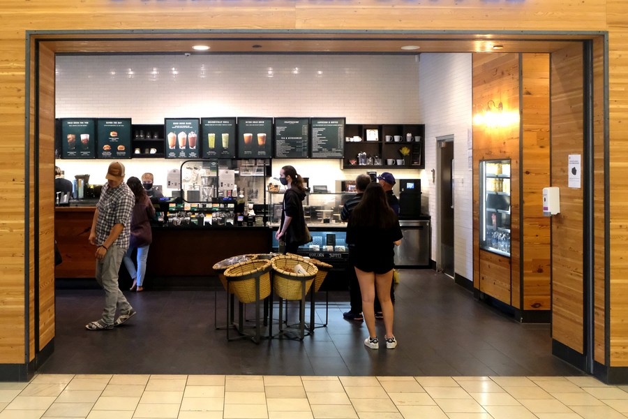 Customers are seen at a cafe in a shopping mall in San Mateo, California, the United States, July 21, 2021. (Xinhua/Wu Xiaoling)