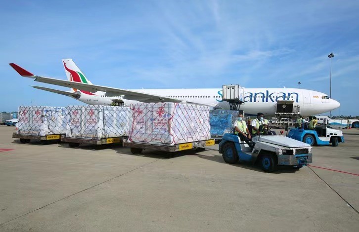 The COVID-19 vaccine donation from China arrives in Colombo, Sri Lanka, July 27, 2021. So far, around 80 percent of the vaccines administered in Sri Lanka came from China. (Photo courtesy of the Chinese Embassy in Sri Lanka)