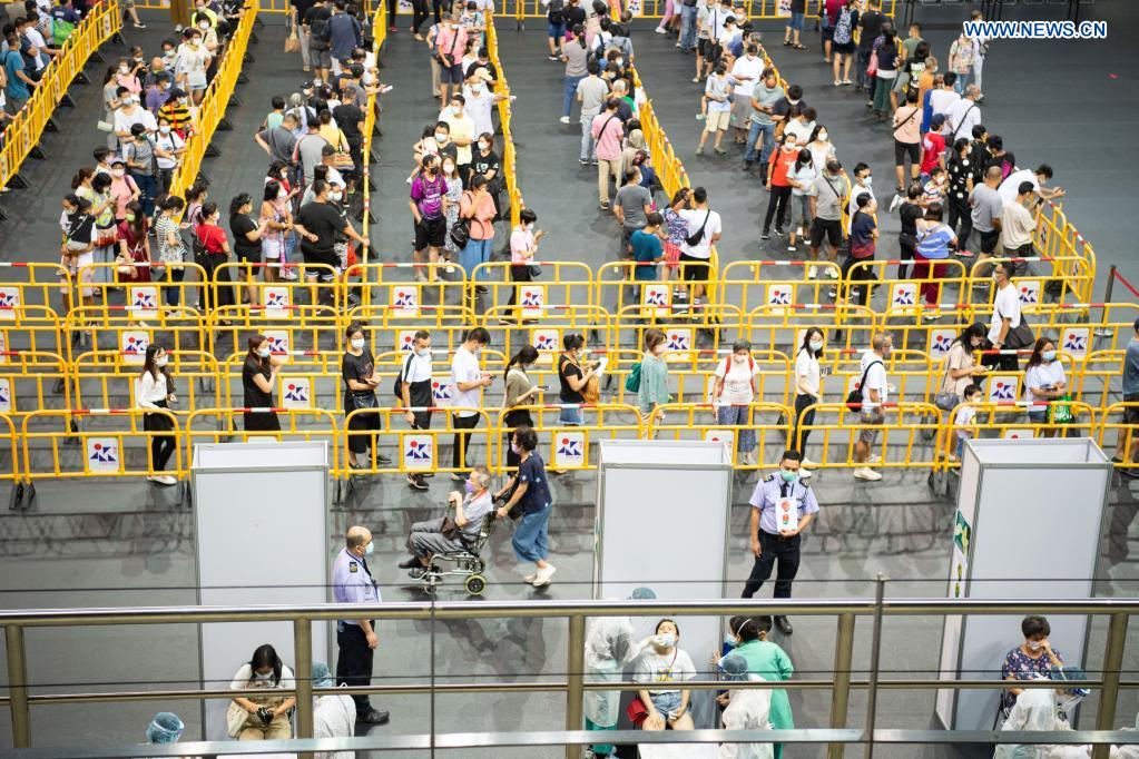 Residents line up to take COVID-19 nucleic acid tests in Macao, south China, Aug. 4, 2021. The mass testing, started from 9:00 a.m. local time Wednesday, is expected to be completed within three days, according to the Novel Coronavirus Response and Coordination Center of Macao. (Xinhua/Cheong Kam Ka)