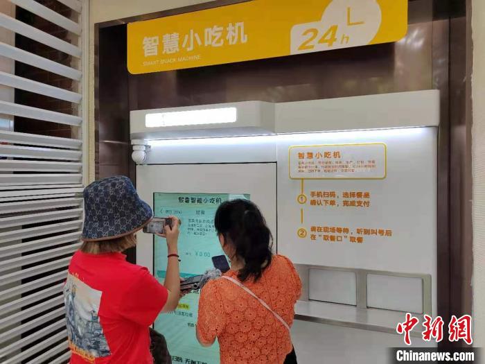 Diners place orders on the smart snack machine in the canteen. (Photo/Chinanews.com)