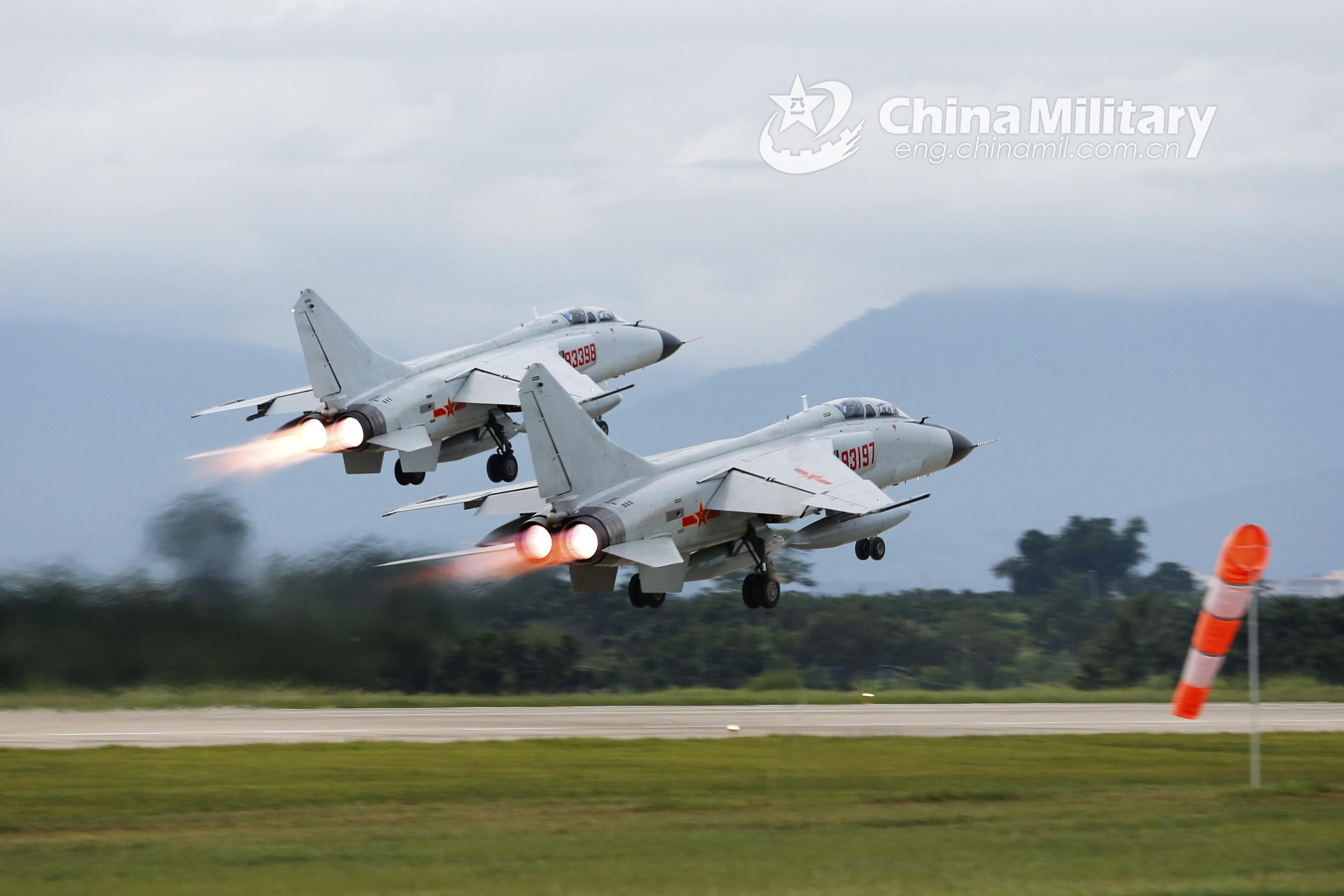 Fighter bombers attached to a naval aviation brigade under the PLA Southern Theater Command take off for a round-the-clock flight training exercise on July 29, 2021. (eng.chinamil.com.cn/Photo by Nie Haifei)